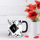 Coloque bolinhas pretas nesta caneca. Bonito letras brancas para o seu monograma... adequadas para amantes de preto e branco. Personalize todas as opções disponíveis conforme desejar.