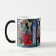 Pintura colorida, vibrante e contemporânea em cores dourada, azul, vermelha, verde, castanha. Um misterioso feiticeiro hipnótico com fantasias elegantes de veludo vermelho segurando uma esfera mágica sentada num trono gótico com gargantas e coruja. Ambiente é surreal, fantástico, alquímico onde você vê um testículo é bebendo de uma xícara, um monge templar voando sobre um sapo, bolhas transparentes, paisagens de fantasia com fogo infernal, céu azul cósmico com estrelas, montanhas do céu, árvores .Egg Tempera em um painel de madeira com folha de ouro. 1989, Miniatura Feita com técnicas pictoriais de 1300 por Alessandro Lumini (c) É também uma bela design de fantasia para Natal, Férias, Aniversário, Dia da Véspera de Ano Novo, Mardi Gras e Saudações de Carnaval.