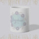 A daisy wreath color morphing mug in pastel blue, yellow and pink. Customize the name area.