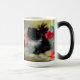 Magic Mug com um gatinho preto e branco! Esse tuxedo fofo se posou entre as flores vermelhas num cobertor azul. Um presente magnífico para amantes de gatos e entusiastas de arte vitorianos!