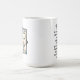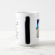 Arte AI retratando uma raça terrestre extra alienígena Pleiadiana masculina e feminina com um fundo de OVNI estrelado. Enumerados no verso da caneca de café estão os traços e características de um Pleiadiano.