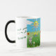 A xícara apresenta uma pintura vibrante e caprichosa de Haji Firuz, personagem tradicional do folclore persa, muitas vezes associado à celebração do Ano Novo Persa, Nowruz. Haji Firuz é retratado vestindo uma fantasia vermelha brilhante, com uma expressão alegre, seu rosto pintado de preto, e suas mãos tocando um pandeiro. Ele fica em um campo exuberante, cercado por flores coloridas, grama verde, e o brilho rejuvenescente do primavera. O sol brilha bem acima, lançando uma luz quente de ouro sobre a cena, simbolizando a chegada da primavera e a renovação da vida. A xícara captura um sentido de celebração, alegria, e a promessa de novos começos, evocando o espírito vivo de Nowruz e o otimismo que vem com a estação do renascimento. A combinação de cores brilhantes, primavera motifs, e a figura alegre de Haji Firuz faz dela um símbolo encantador da estação.