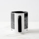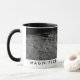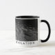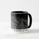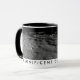 A descrição icónica do Aldrin do zumbido da superfície lunar brasonada em uma caneca preto e branco à moda com paisagem lunar original.