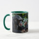 Caneca Maman chimpanzé observe tendrement son bébé.