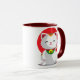 O Maneki-neko (literalmente "Beckoning o gato"; igualmente sabido como o acolhimento do gato, o gato afortunado, o gato do dinheiro, ou o gato da fortuna) são uma estatueta japonesa comum (encanto afortunado, talismã), feita geralmente de cerâmico, que é acreditado para trazer a boa sorte ao proprietário. O gato, a sombra e o círculo vermelho são imagens separadas, você podem personalizá-lo porque você vê o ajustado. Faça-lhes seus próprios, cores da mudança adicionam suas palavras.