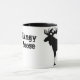 Esta caneca de café cerâmica é mostrada com um impressão de arte de alce. Interior e alça pretos. Personalize este item ou comprar como está. Imagem do stock