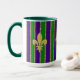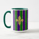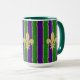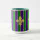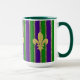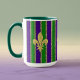 Mardi Gras roxa e verde com bandas estreitas de ouro entre, e motins de pulgas douradas na frente, trás e lado. Semelhante a várias outras canecas nesta coleção — você pode criar um conjunto com designs exclusivos mas relacionados para toda a sua família.