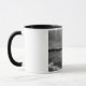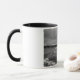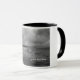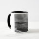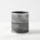 Uma caneca com imagem de praia em dia nublado. Preto & Branco