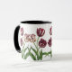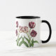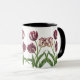 Esta caneca apresenta seis tulipas brancas e marrom. Esta caneca vai fazer um presente maravilhoso para uma garota especial em sua vida.