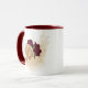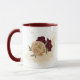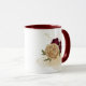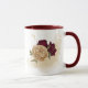 Belíssima caneca de café com flores marrom e dourado bege com folhas verdes .