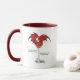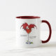 Um pequeno dragão vermelho giro se aproxima de uma azeitona verde em um copo de martini
