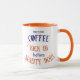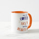 Funny coffee mug with the text "May your coffee kick in before reality does" on both sides of the mug.