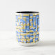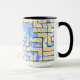 Uma serra colorida de labirinto azul e amarelo. Um design divertido para crianças, prestadores de serviços de dia e professores.