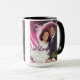 O punho e o bordo da caneca são coloridos para combinar. 11 onças. ou 15 onças. Disponível em 10 cores. Máquina de lavar louça e cofre forte da microonda. Importado.