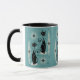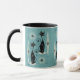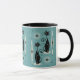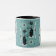 Para o entusiastas retrógrado e amoroso gato, a minha ilustração vetorial original de gatos pretos, starbursts e diamantes em estilo atômico de meio século, em preto e cinza, sobre um fundo azul de cadete, com um grão de tecido simulado.
