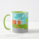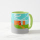 Este Meio século Moderno Cartoon House Mug vai querer que você coloque o tapete WELCOME e se faça em casa! A design de arte minimalista da década de 1960 apresenta uma elegante pedra laranja e uma casa de vidro aqua numa relva luxuosa, verde, em forma de bumerangue. O gramado forma um oásis no meio de suas cinzas, arredores de concreto. Uma palmeira verde está balançando na brisa. Quatro, pedras laranja pisadas levam o caminho para a porta traseira, vermelha, frontal com três vidraças retangulares de vidro. À esquerda da porta, uma floreira de turquesa segura uma planta verde tropical. A casa tem um telhado branco inclinado em V que aponta em direção a duas nuvens brancas em forma de rim. O céu é uma forma serena de aqua. Ninguém vai querer jogar pedras desta design de casa de vidro moderna! Comprar este produto da era espacial e seja o gato mais legal do seu quarteirão!