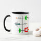 Esta caneca tem um design moderno século médio que se parece com um móvel com meio círculo, retângulo inclinado, triângulo, linhas e círculos em vermelho, verde, verde, cor de rosa, laranja e preto.