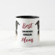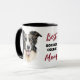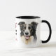 "A melhor mãe da Collie FRONTEIRA" declara esta caneca fofa no centro. A imagem em cada lado é um belo retrato Collie, preto e branco, da Borda. Todo o texto é personalizável, portanto você pode alterá-lo para o Pai ou qualquer outra pessoa.