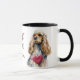 "A melhor mãe do cão" declara esta caneca fofa no centro. A imagem em cada lado é uma imagem adorável de uma cabana loira com coração vermelho. Perfeito para Dia de as mães ou aniversário dela! Todo o texto é personalizável, então você também pode alterá-lo para Pai no Dia de os pais.