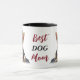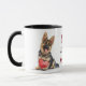"A melhor mãe do cão" declara esta caneca fofa no centro. A imagem em cada lado é uma imagem adorável de um Cachorro German shepherd oferecendo um coração vermelho. Perfeito para Dia de as mães ou aniversário dela! Todo o texto é personalizável, então você também pode alterá-lo para Pai no Dia de os pais.