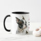 "A melhor mãe de Boston Terrier" declara esta caneca fofa no centro. A imagem em cada lado é um belo retrato preto e branco do Boston Terrier. Todo o texto é personalizável, portanto você pode alterá-lo para o Pai ou qualquer outra pessoa.