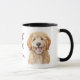 "Melhor Mãe de CACHORRO" declara esta caneca fofa no centro. A imagem em cada lado é uma imagem adorável de um Goldendoodle loiro. Perfeito para o Dia das Mães ou o aniversário dela! Todo o texto é personalizável, então você pode mudá-lo para o Papai no Dia dos Pais também.