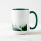 Aquarela de cachorro doce olhando pelo Parque Nacional do Glacier a partir da janela do carro