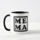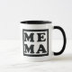 Mema Coffee Mug. Esta caneca de café é um presente perfeito para qualquer avó que se chama Mema em vez de vovó. O design quadrado preto-e-branco, que diz Mema, é simples, minimalista, elegante, limpo, moderno e contemporâneo.