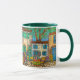 Uma cena colorida de uma encantadora mesa para 2 na Picturesca Provence, França por Lisa Lorenz numa caneca de na moda.