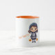Este personalizável design de caneca do "Dia das Bruxas" apresenta uma garota com fantasia de Halloween com texto personalizado.