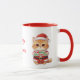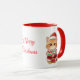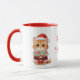 The mug boasts a vibrant red rim and handle against a crisp white body, adding an extra festive touch that complements the design.