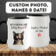 Torne o seu noivado perfeitamente memorável com esta caneca de gato personalizada! Com a frase "Meus Humanos estão se casando", a foto do seu gato é de frente e de centro para celebrar sua história de amor. O verso inclui seus nomes e o ano do casamento. Ideal para amantes de gatos, casais recém-engajados, ou como um presente único de seu amigo felino. Basta carregar a imagem do seu gato e personalizar os detalhes!** Nota: Para remover o fundo da sua foto carregada, use a ferramenta "Editar usando o design" e clique em "Remover BG".