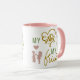 Uma linda e colorida caneca de café para irmãs irmãos ou qualquer um que sinta o amor de uma irmã pelo seu melhor amigo! A palavra "irmã" está embrulhada num design de coração e a palavra "amigo" está em negrito para toda uma mensagem que diz: "MINHA IRMÃ MEU AMIGO". À esquerda do design estão duas meninas na silhueta segurando um balão de coração entre elas e à direita um pedúnculo de flor rosa.