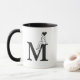 A stylish minimalist mug featuring a bold black letter “M” with an elegant girl sitting on top. Perfect for coffee or tea lovers who enjoy modern, artistic designs. A lovely personalized-style gift for birthdays, initials lovers, or daily inspiration.