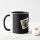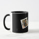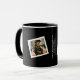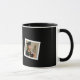Delight you Graduate with this 2 photo keepsake coffee mug that has a simple, black & white theme with photos held in white frames on a black background polaroid style, and customizable centered text for name, year & school name! Available on mugs, beer stein & travel mug styles!