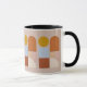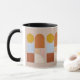 Sip your morning coffee in style with this unique mug. Features a modern geometric abstract design in mustard yellow, terracotta, and soft blue—perfect for mid-century modern kitchens and aesthetic desk decor. The black handle and interior provide an elegant, professional contrast.