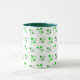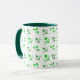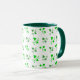 Uma caneca com um simples padrão elegante de shamrock em verdes irlandeses com trevas de três folhas. Clique em Personalizar para adicionar seu nome ou mensagem personalizada, alterar as cores de fundo e muito mais.