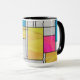As presentes e acessórios da linha amarela, rosa, azul e negra de Mondrian mostram nossa arte texturizada de inspiração de Piet Mondrian com nossa única textura e cores em padrões geométricos de abstrato criados por nosso talentoso artista e desenhista, Kurt Keller.