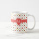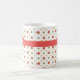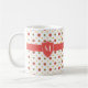 Uma Mug de Café muito chique para personalizar com um Monograma ou Iniciais. O padrão de Bolinhas Vermelhas, Verdes e Amarelas em um Fundo Branco é da coleção Posh & Painterly 'Rangoli'.