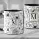 Celebre a mulher especial em sua vida com esta na moda e sofisticada caneca monográfica, projetada para trazer um toque de elegância para sua rotina diária. Apresentando um padrão floral preto-e-branco chico que lembra as marca de alto-moda e de luxo, esta caneca combina o design da moda com o estilo do eterno. A design de menina inclui uma corajosa inicial serif que se destaca, enquanto seu nome é graciosamente escrito abaixo em uma delicada tipografia de roteiro. Quer seja para uma mãe, avó ou outro amigo ou familiar querido, esta caneca adiciona um talento personalizado e chique a qualquer ocasião. O esquema de cores preto-e-branco é versátil e na moda, mas você pode personalizar as cores para corresponder ao seu gosto. Isto faz dele não apenas um presente, mas um bem significativo que ela vai tesourar todos os dias.Na moda Moderno Elegante Negro Monograma Mug