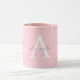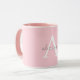 Monograma branco personalizado em fundo cor-de-rosa, adicione seu monograma e seu nome para obter uma caneca elegante. um dom monograma perfeito, personalize-o agora; clique no botão personalizar para adicionar seu nome e inicial em ambos os lados da caneca.