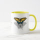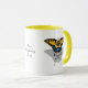 Borboleta de cauda torta com a asa espalhada voando sobre sua sombra. Dentro da sombra de um M, o m é curto para monograma e pode ser personalizado para o seu início.
