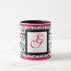 Caneca MONOGRAMA DAMASK, Fúchsia Negra Cor-de-rosa