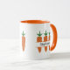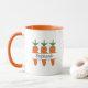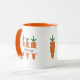 Uma caneca com três monogramas de cenoura e um dentro de nome personalizável para a decoração da sua cozinha ou café matinal. Você também pode fazê-lo como um presente para uma criança, um agricultor ou um vegetariano!
