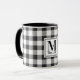Monograma personalizado de café/caneca de chá com monograma personalizado e nome da família em um padrão de verificação/xadrez/gingham de búfalos preto e branco. Ideias de presente personalizadas de Natal/Feriado. Presentes para ela. Presentes monogramas de Natal.