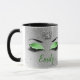 Este Verde limão espantoso "Glitter Eyes Monograma Mug" apresenta uma Coroa da Rainha Prateada e um par de tampas oculares com sombra brilhante Verde limão, uma camada de efeito diamanté com longas chicotadas pretas sobre um fundo de efeito reluz. Personalize com o nome de sua escolha no Verde limão correspondente. Concebido por Jacqueline.