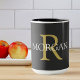 Personalize esta Caneca de Café preta com seu Monograma e Nome. Este simples Design Clássico em texto dourado e branco também pode ser usado para o nome de uma empresa e site.