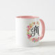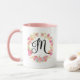 Comece seu dia com esta fofa cor-de-rosa, medidora de café/xícara de chá. A imagem floral bonita está em ambos os lados, fazer-a adequada para pessoas de esquerda e direita. Presente ideal para o seu amado. Eles vão lembrar de você quando começarem o dia deles com chá ou café. Tenho uma caneca fofa com cada alfabeto. Clique aqui para obter o nome inicial. https://www.zazzle.com/collections/cute_pink_monogram_a_flower_wreath_mug-119846758521068904