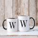 Uma caneca de café moderna personalizada com um monograma clássico da família ou outro texto personalizado. Use as ferramentas de design para adicionar seu próprio texto e fotos para criar um presente único para recém-casados ou para o aquecimento doméstico.