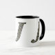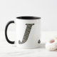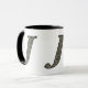 Letra J monográfica elegante cheia de delicadas flores brancas de hidrangea café ou caneca de chá. Clique em Personalizar para adicionar texto. ideia de presente de excelente. Esta imagem está disponível em muitos produtos da minha galeria.